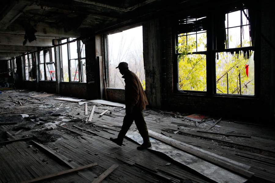 Когда-то на этом заводе Packard работало около 11 тыс. человек. Сейчас он, как и многие другие предприятия, стоит пустым. А местные жители приходят сюда в поисках бесплатного строительного материала