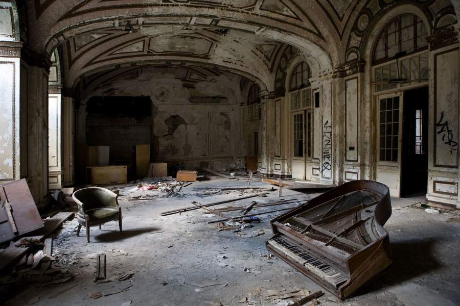 После банкротства города в 2013 году заброшенными оказались не только жилые дома, но и административные здания и отели. На фото: лобби Lee Plaza Hotel, шедевра архитектуры эпохи ар-деко