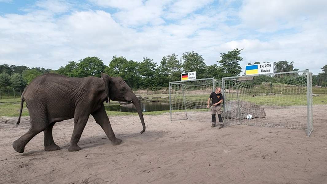 Зная любовь слонихи к играм с мячом, работники парка во время чемпионата поставили в ее загоне двое ворот, над которыми вешали флаги команд. В чьи ворота животное забивало первый гол (а на это иногда уходило немало времени), та команда и считалась проигравшей. Слониха верно угадала исход всех матчей с участием родной команды, затем дала верный прогноз финала Лиги чемпионов («Бавария» обыграла «Боруссию»).