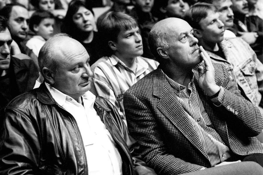 Станислав Говорухин наблюдает за ходом чемпионата мира по боксу вместе с писателем-сатириком Михаилом Жванецким, 1991 год