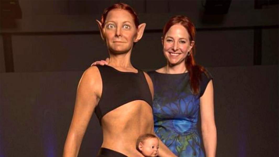 Также усовершенствованной женщине добавили сумку кенгуру для вынашивания ребенка и дополнительные артерии для снижения вероятности сердечного приступа. Эту модель Элис Робертс сделала для документального фильма Би-би-си, повествующего о научных перспективах создания совершенного человека.