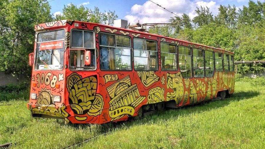 Легендарный трамвай маршрута № 13 в Новосибирске раскрасили под хохлому