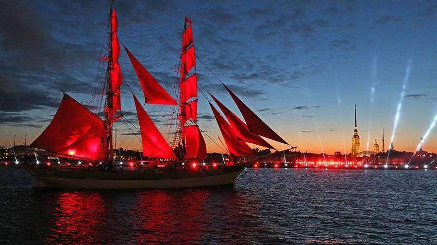 Праздник выпускников «Алые паруса» проводился с 1968 по 1979 год. В 2005 году по инициативе банка «Россия» традицию возродили. Мероприятие проходит в ближайшую к самой короткой ночи года субботу. Оно начинается с удара в корабельную рынду и включает концерт и мультимедийное шоу в акватории Невы.
