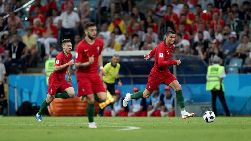 Криштиану Роналду в матче группового этапа чемпионата мира по футболу FIFA 2018 между сборными Португалии и Испании