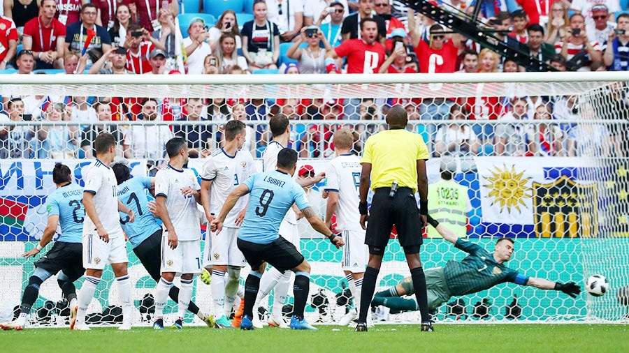 В заключительном туре группового этапа ЧМ-2018 сборная России крупно уступила команде Уругвая (0:3) и заняла второе место в группе А. Два мяча были забиты в первом тайме: отличился нападающий Луис Суарес, еще один гол в свои ворота отправил россиянин Денис Черышев. На 92-й минуте встречи третий мяч забил форвард уругвайцев Эдинсон Кавани. При этом большую часть матча российская команда после удаления Игоря Смольникова играла в меньшинстве. В 1/8 финала турнира подопечные Станислава Черчесова встретятся с победителем группы на столичном стадионе «Лужники».