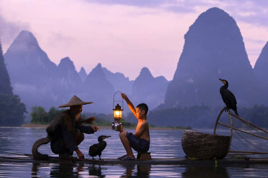Считается, что зародилась традиция в Китае. На фото: китайские рыбаки на рассвете после целой ночи, проведенной на воде