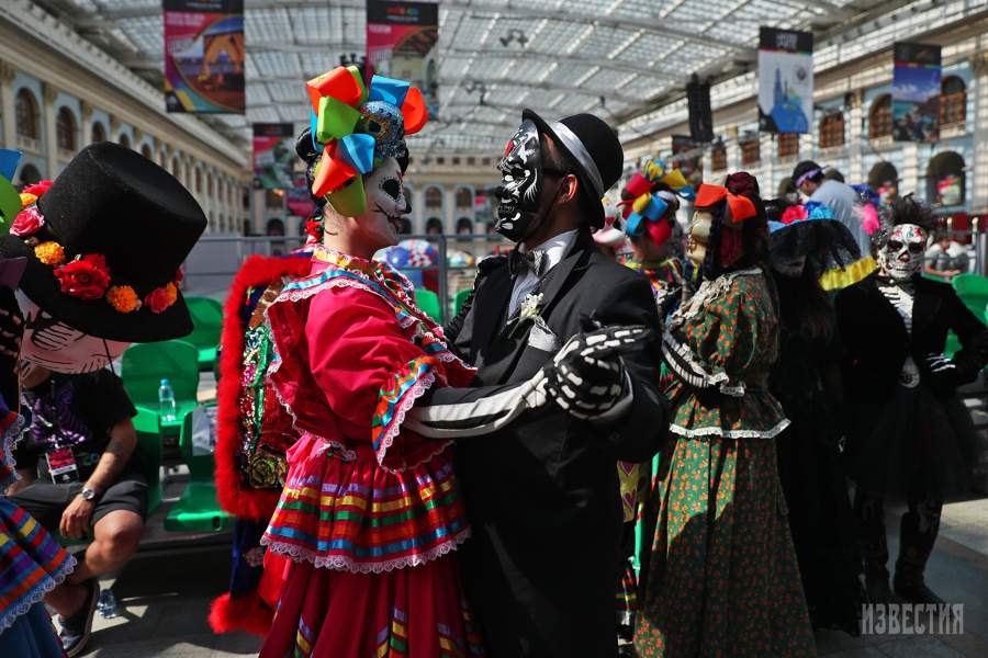 Вообще-то в Мексике День мертвых отмечают 1 и 2 ноября, но по случаю праздника футбола в российской столице карнавал решили провести досрочно, чтобы познакомить местных жителей с мексиканскими традициями