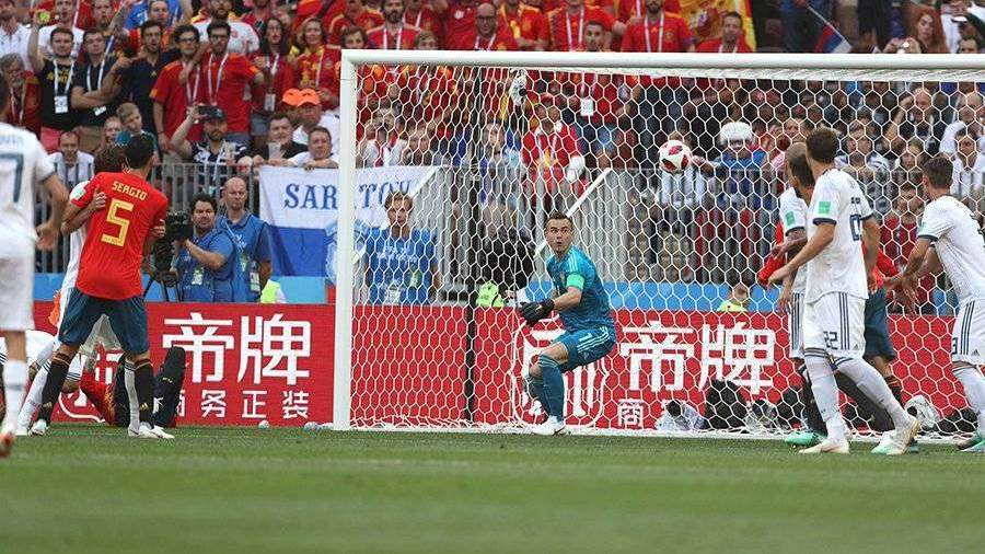 Сборная Испании вышла вперед в матче 1/8 финала чемпионата мира по футболу против команды России. Счет был открыт на 11-й минуте.