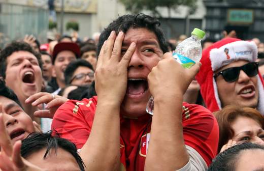 Болельщики во время просмотра матча в фан-зоне на Воробьевых горах в Москве