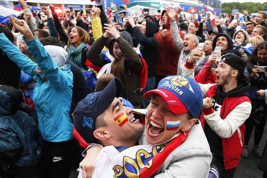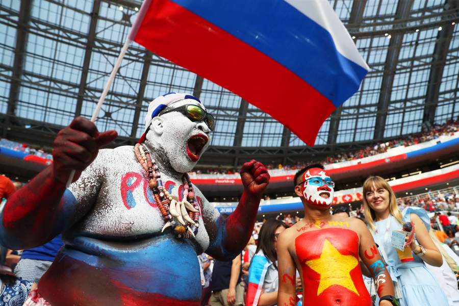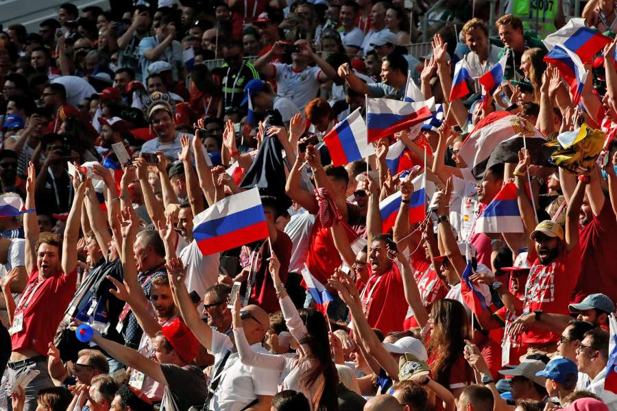 Российские болельщики на стадионе «Лужники»