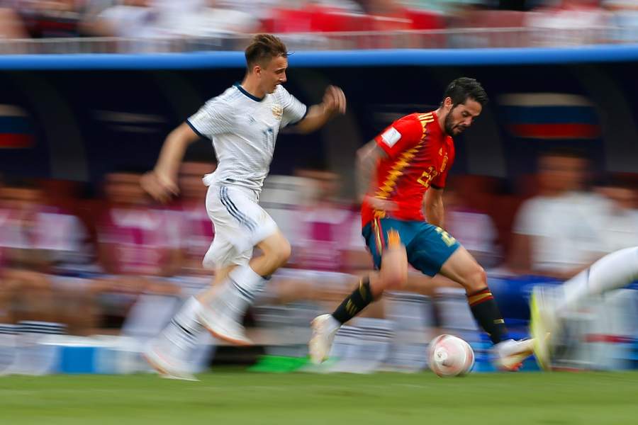 Полузащитник сборной России Александр Головин и полузащитник сборной Испании Иско