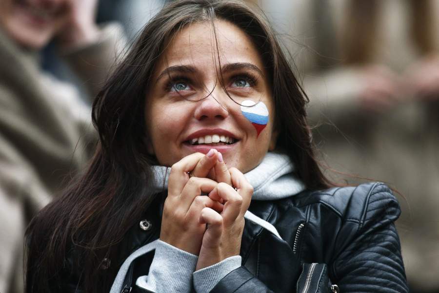 Болельщица сборной России во время матча