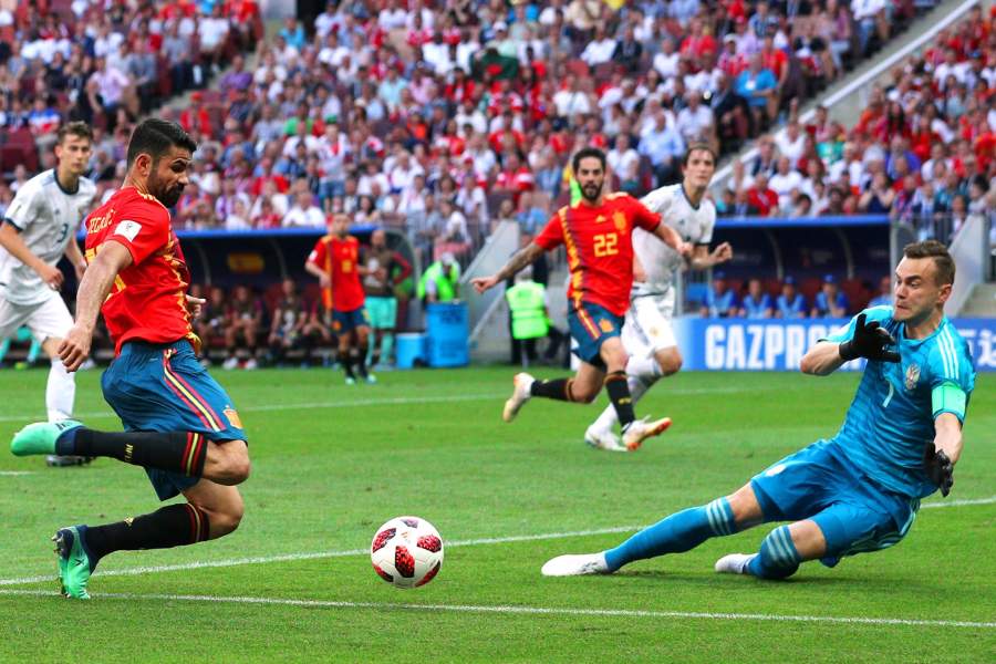 Игорь Акинфеев отбивает удар Диего Косты