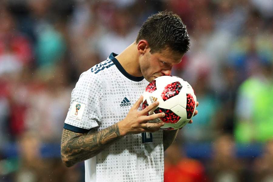 Федор Смолов целует мяч перед ударом в серии пенальти