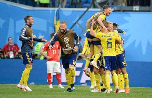 Сборная Швеции с первого места вышла в 1/8 турнира, набрав на групповом этапе шесть очков в трех играх. Сине-желтые обыграли команды Южной Кореи (матч состоялся в Нижнем Новгороде 18 июня и закончился со счетом 1:0) и Мексики (Екатеринбург, 27 июня, 3:0). Поражение шведы потерпели лишь в игре против сборной Германии (1:2), которая прошла 23 июня на стадионе «Фишт» в Сочи. В одной восьмой финала чемпионата мира «росомахи» сразились со швейцарцами, которых они обыграли со счетом 1:0. Игру на стадионе в Санкт-Петербурге посетили посол Петер Эриксон и министр предпринимательства и инноваций Швеции Микаэль Дамберг.