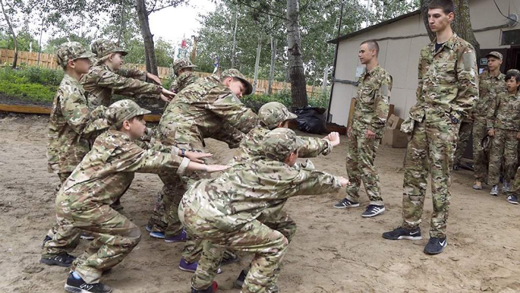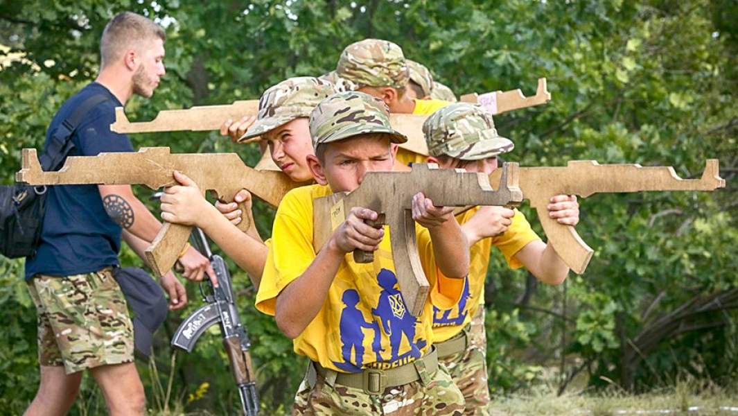 Киевской области. Школьники занимаются военной подготовкой, спортивными тренировками, реконструкциями реальных боев, получают навыки выживания в экстремальных ситуациях. Всё это происходит на фоне массированной идеологической обработки. «Какой у нас девиз? Мы — дети Украины! Пусть Москва лежит в руинах, нам на это наплевать! Мы завоюем весь мир!» — скандируют дети 10-летнего возраста. На их лицах читается злоба и ненависть.