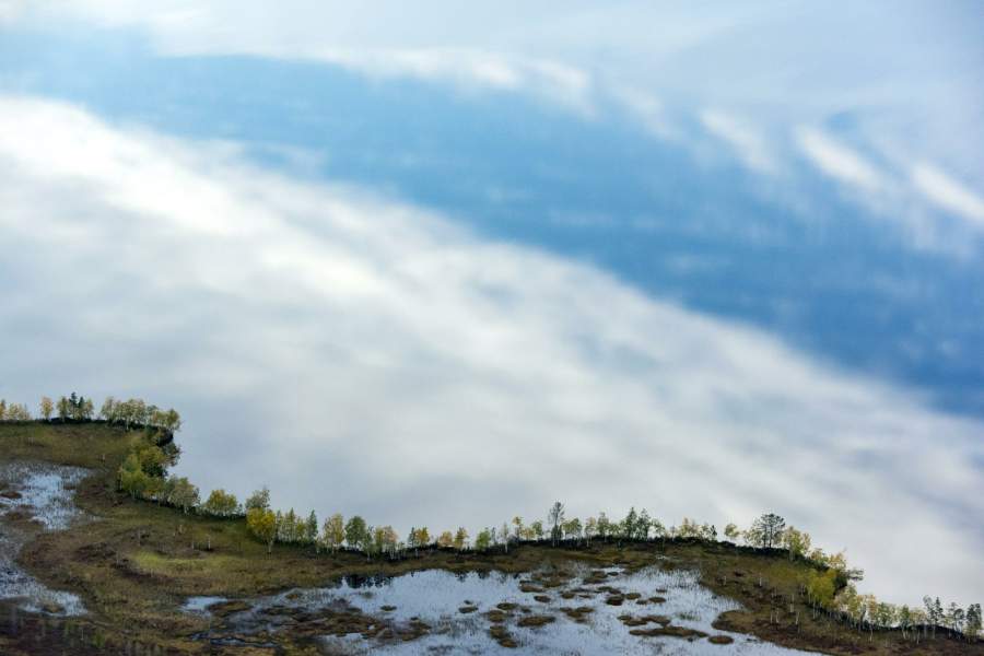 Островок с одиноким деревом посреди озера Нумто