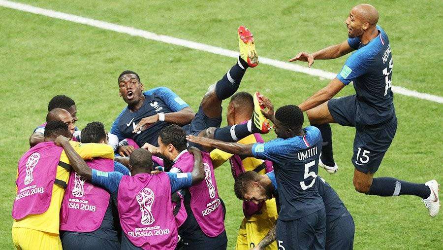 Игроки сборной Франции радуются забитому голу