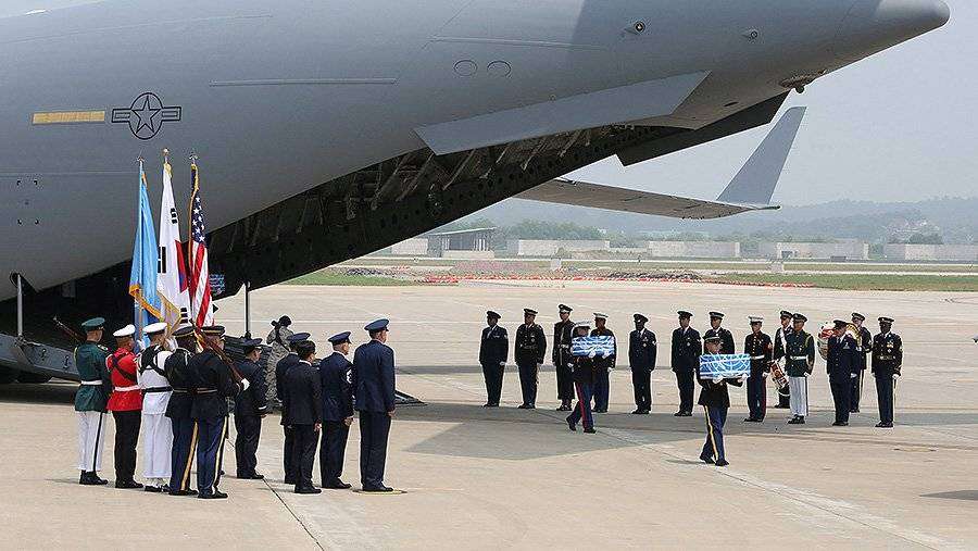 Самолет C-17 ВВС США вылетел из северокорейского Вонсана в южнокорейский Осан, пишет агентство Рёнхап. 1 августа на авиабазе состоится церемония репатриации, а после борт должен прибыть на базу американских ВВС Хикэм на Гавайских островах.