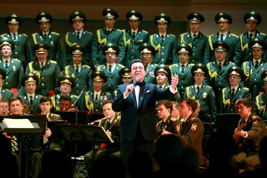 Иосиф Кобзон и Академический ансамбль песни и пляски внутренних войск МВД России выступают на концерте памяти артистов Ансамбля им. А.В. Александрова в Москве, 2017 год