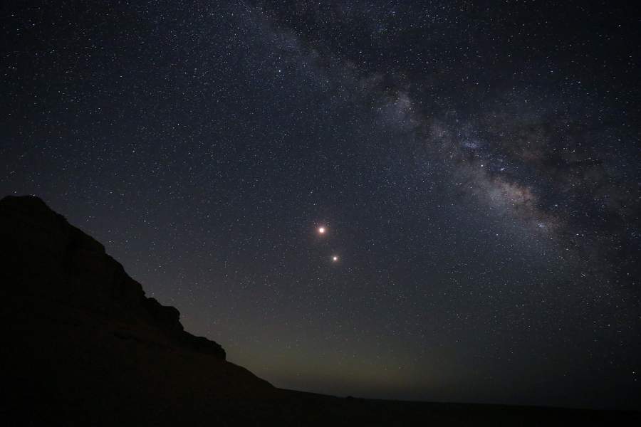 Луна и Марс над пустыней в регионе Эль-Файюм к юго-западу от Каира