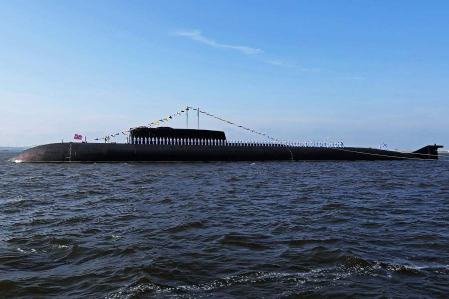 Моряки на борту атомного подводного ракетоносного крейсера проекта 949А «Антей» К-266 «Орел» на главном военно-морском параде в акватории Кронштадта