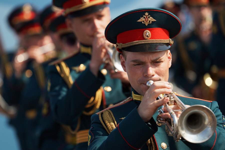 Музыканты военного оркестра во время парада