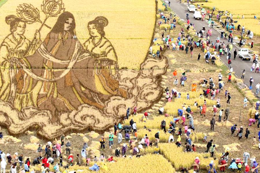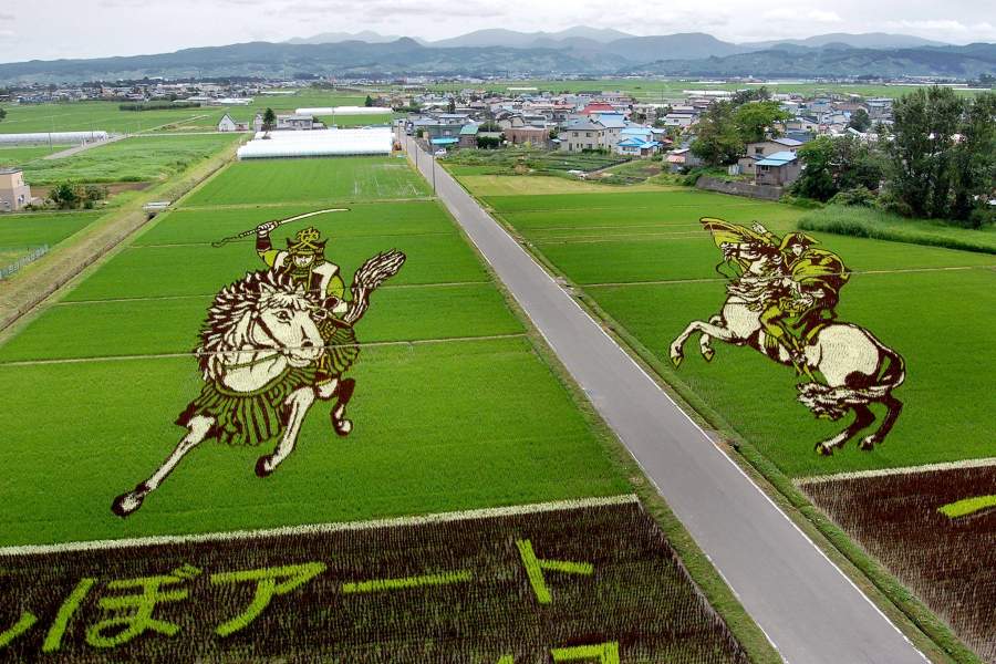 В Японии туристы уже больше двух десятков лет специально приезжают в деревни нескольких префектур, чтобы посмотреть картины на рисовых полях — изображения удивительной точности там воспроизводятся с помощью риса разных сортов и цветов. Посмотреть на некоторые из них можно в галерее портала iz.ru