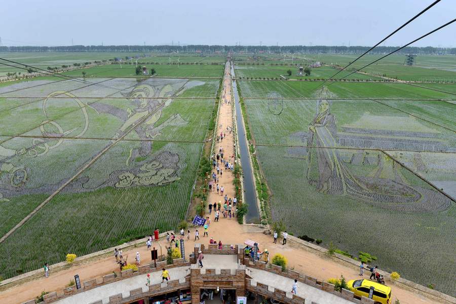 Популярную у туристов традицию переняли и в Китае. Это, например, встреча двух божеств, которую изобразили рисоводы провинции Ляонин в 2016 году