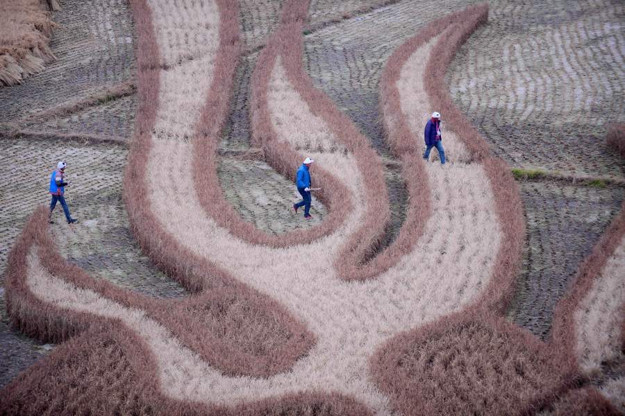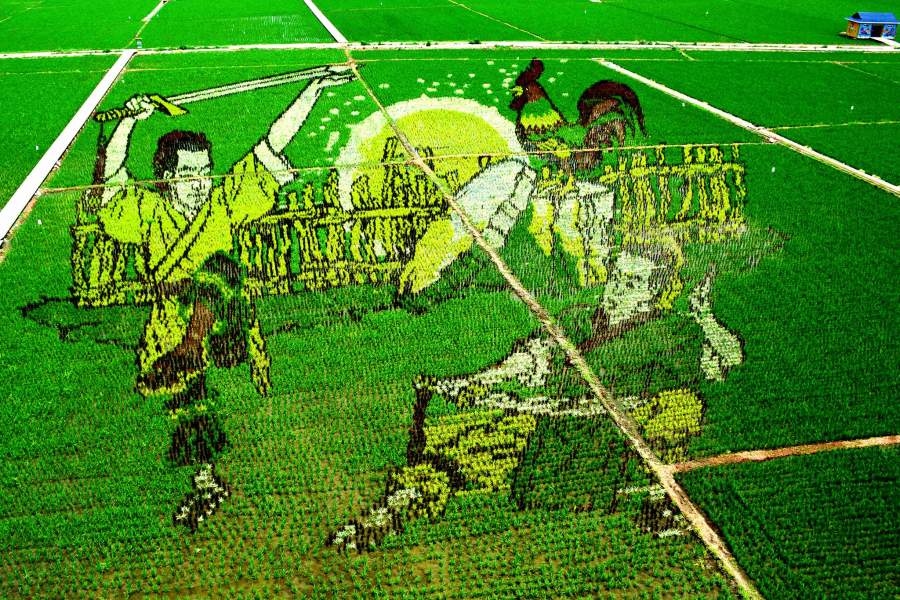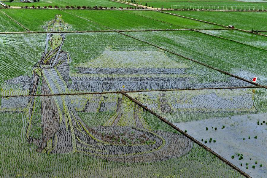 Рисунки крестьяне обычно выбирают коллективно перед сезоном посадки — потом их наносят на поле, засеивая разными сортами риса