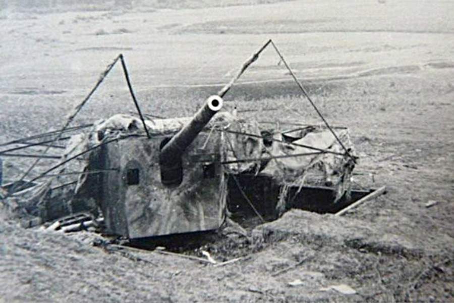 Долгое время после этого крейсер оставался учебным кораблем Балтфлота. В 1941 году, когда немцы подошли к Ленинграду, орудия с «Авроры» сняли и использовали в качестве сухопутных для защиты города. На фото: огневая точка «Авроры» в сентябре 1941 года