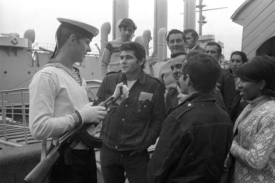 Старший матрос крейсера «Аврора» с кубинскими туристами, 1976 год