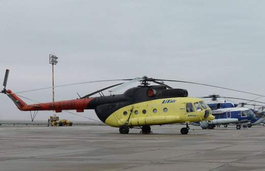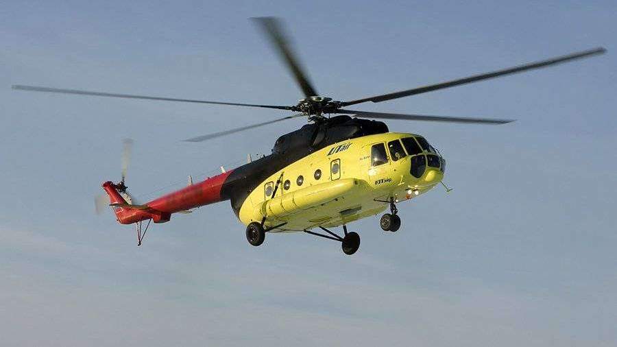 Другой вертолет Ми-8 транспортировал на лебедке трубы. Транспортное средство приземлилось, никто из присутствующих на борту не пострадал.