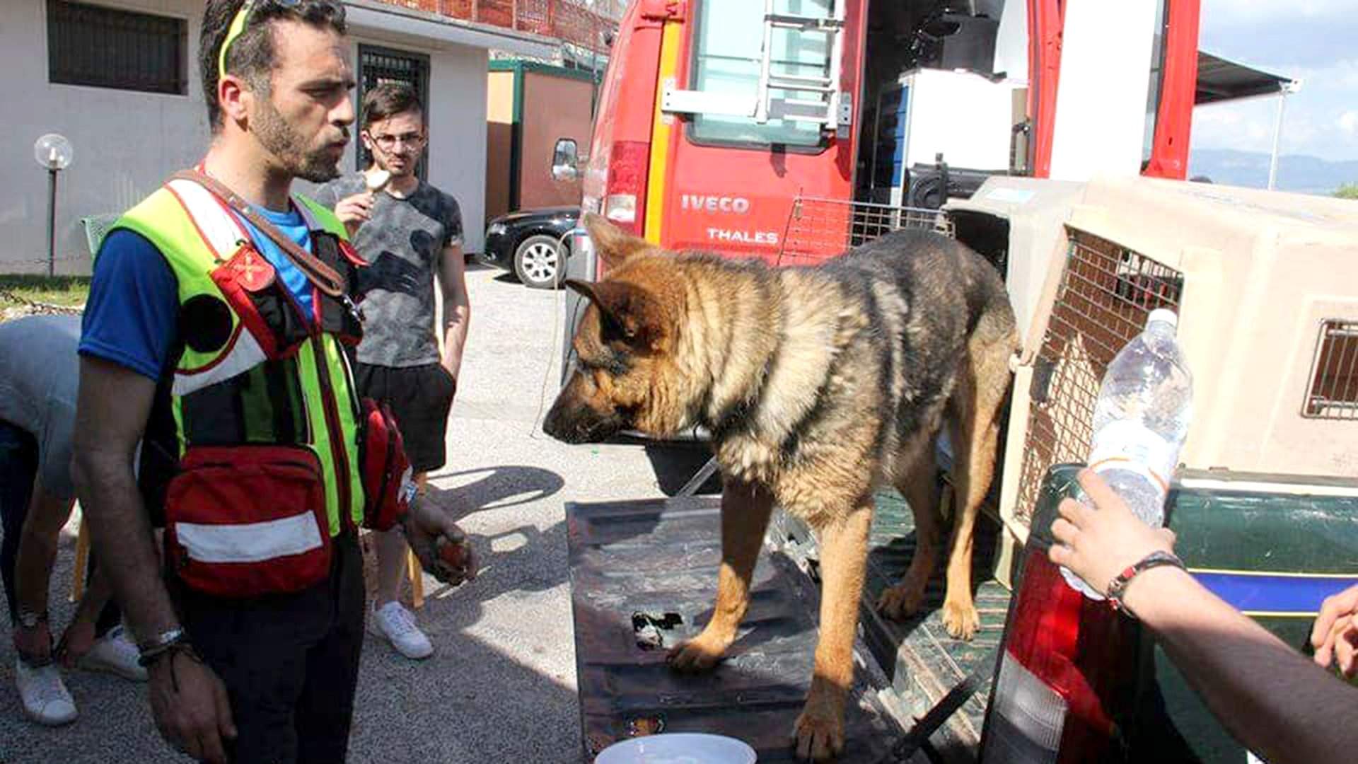 В Италии же произошла крайне трагичная история с немецкой овчаркой, которую звали Каос. Он помогал искать выживших, которые оказались под завалами после землетрясения магнитудой 6,2 в городе Аматриче в августе 2016 года. Тогда в результате подземных толчков погибли свыше 200 человек. Каос и его владелец Фабиано Этторре одними из первых прибыли на место происшествия. В течение следующих нескольких недель они неустанно работали вместе со спасателями.