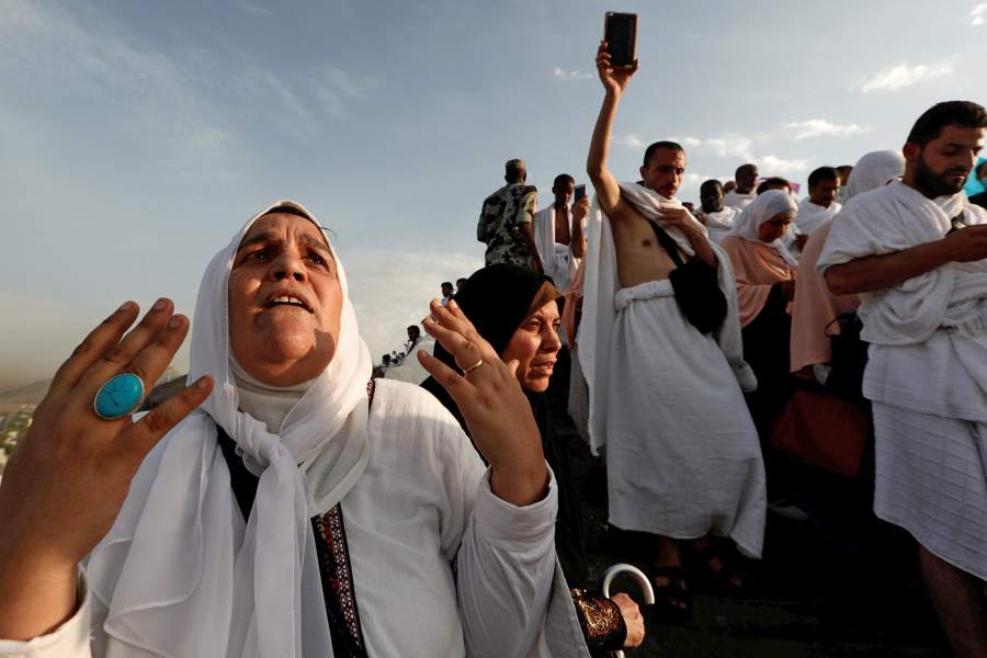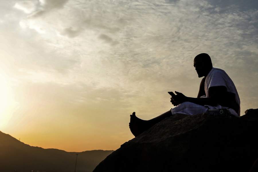 Паломник молится на горе Арафат, расположенной в 20 км от города. Считается, что именно с нее Мухаммед произнес свою последнюю проповедь. Стояние на горе Арафат — один из нескольких неотъемлемых этапов хаджа