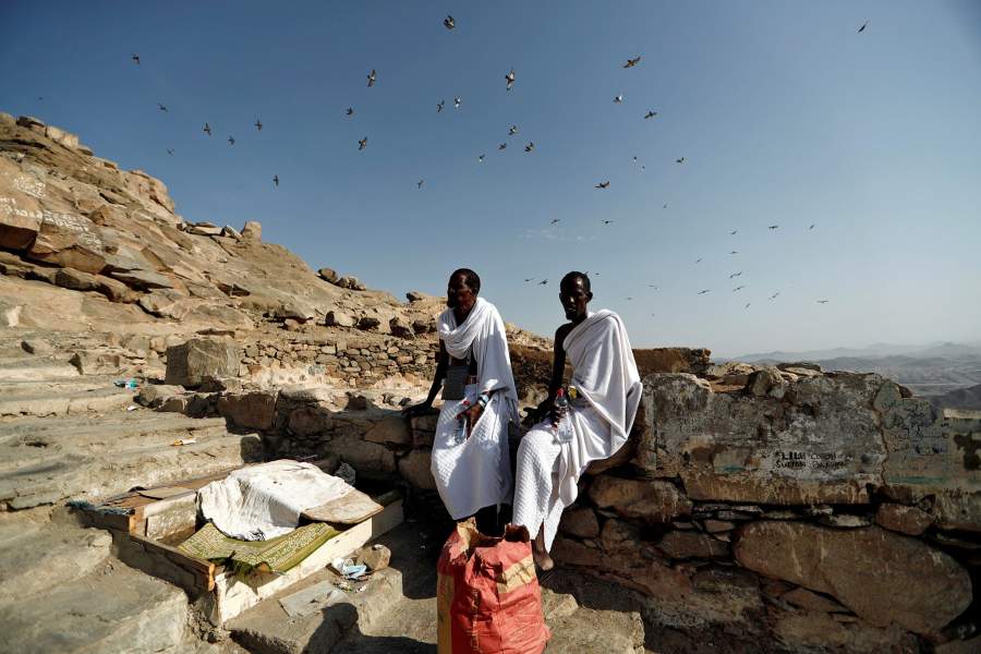 Паломники из Сомали отдыхают после восхождения на священную гору Джабаль аль-нур, на вершине которой, согласно преданию, пророк Мухаммед получил первую заповедь от Аллаха