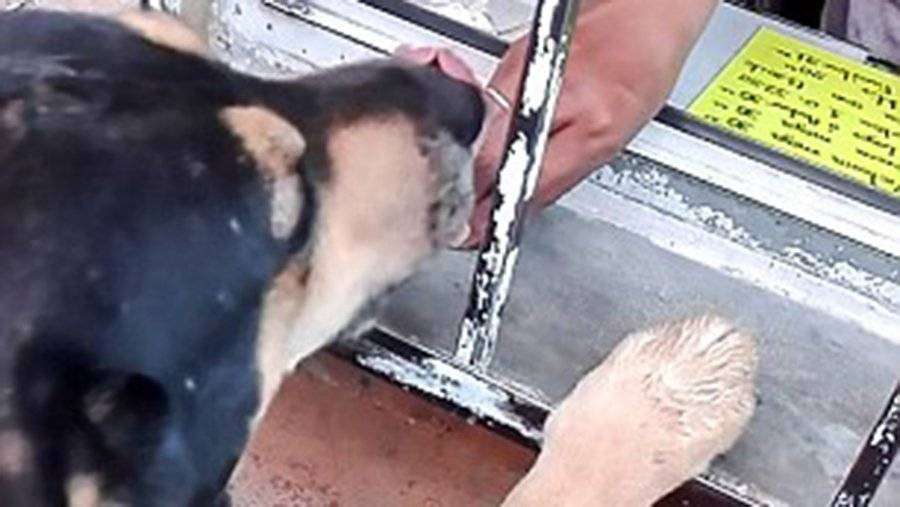 На кадрах видно, как собака зажимает между зубами деньги, встает на задние лапы и подает мелочь в кассу, а взамен получает еду.