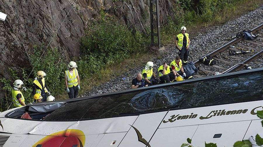 Автобус рухнул на железнодорожные пути в Финляндии
