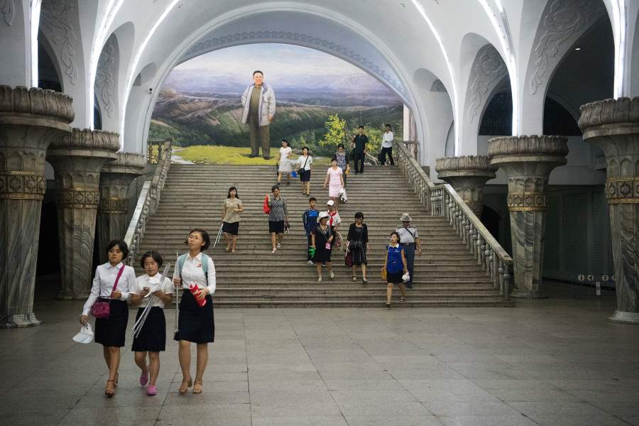 И все-таки некоторым журналистам удается получать разрешение посетить страну и рассказывать, чем живут простые корейцы. Недавно из такой поездки вернулся фотограф Карл Корт. На фото: станция пхеньянского метро