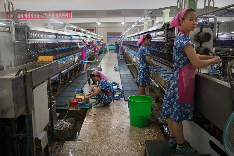 Кроме того, он должен был придерживаться нескольких правил, фотографируя в этой стране. Например, снимать статуи и изображения Ким Ир Сена и Ким Чен Ира можно только целиком, ни в коем случае не обрезая. Соглядатаи могли проверить снимки в любой момент. На фото: работницы шелкового комбината в Пхеньяне