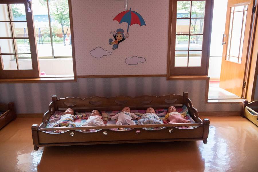Естественно, перемещался фотограф только по заранее оговоренным местам с двумя сопровождающими и водителем. «Они просто прилипли ко мне, и так продолжалось, пока я не прошел таможенный контроль перед отлетом», — рассказывает Корт. На фото: занятие в детском саду
