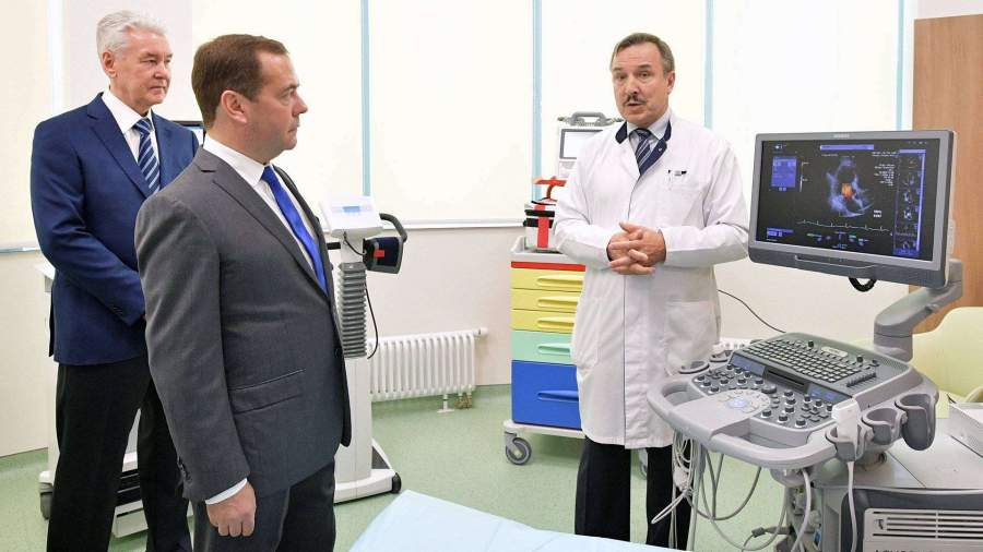 Главе кабмина рассказали об установленном в клинике новейшем оборудовании, показали кабинеты, палаты и лаборатории. Медведев осмотрел конференц-зал и симуляционный центр.