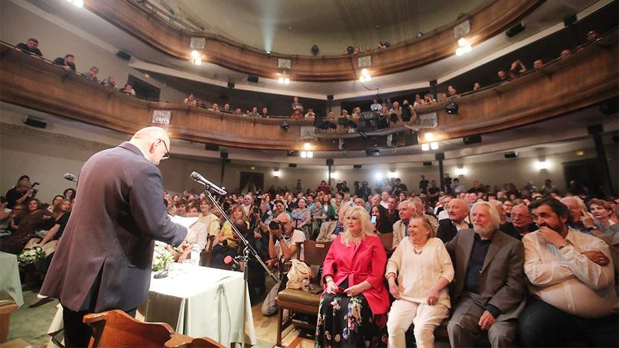 Сергей Женовач появился в зрительном зале, скромно улыбаясь и сильно волнуясь. Труппа встретила его овацией. Поздравив всех со 121-м сезоном, он порадовал собравшихся хорошими новостями. Во-первых, звания заслуженных артистов в августе получили несколько актеров МХТ — Дмитрий Дюжев, Дарья Мороз, Станислав Дужников, Максим Матвеев. Александра Семчева наградили орденом Дружбы.
