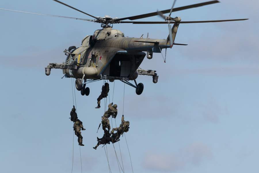 Одним из самых ярких эпизодов учений стала высадка оперативно-тактического десанта в тылу противника. Для выброски личного состава и техники были использованы 25 военно-транспортных самолетов Ил-76МД. В десантной операции приняли участие вертолеты Ми-8АМТШ, Ми-24П, Ка-52 и самый большой вертолет в мире Ми-26