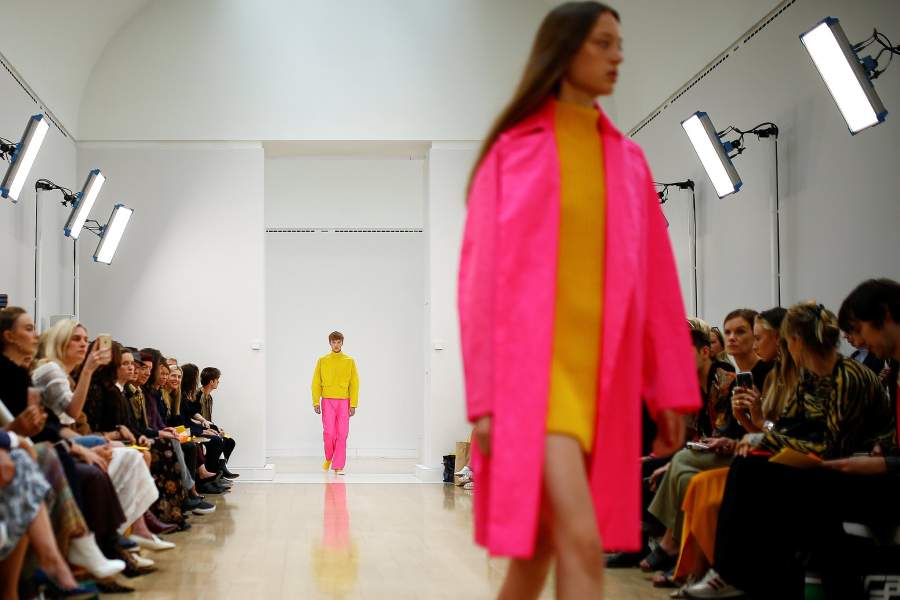 Ветеран британского дизайна Джаспер Конран предложил для будущей весны яркие неоновые цвета и принты в поддержку движения #MeToo