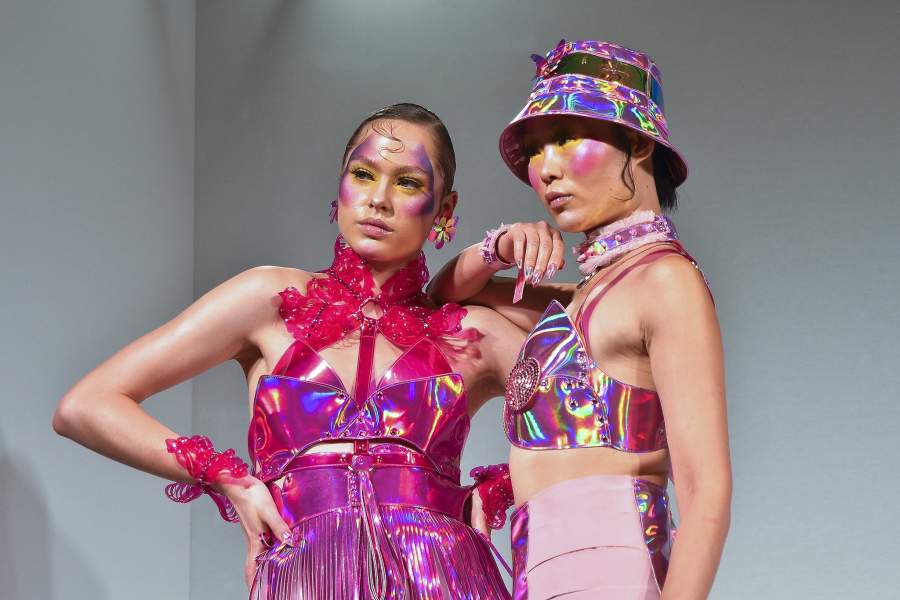 В коллекции выпускницы Лондонского колледжа моды Ады Зэндитон яркий полиэстер сочетался с не менее ярким макияжем моделей