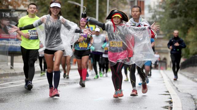 Московский марафон — самый крупный забег в России — собрал более 30 тыс. участников, включая иностранных бегунов более чем из 90 государств. Погода, похоже, никого не испугала: несмотря на дождь, ветер и уже по-настоящему осеннюю прохладу, проверить свои силы пришли и профессионалы, и любители. Они соревновались в двух забегах — на 42,2 км и 10 км.