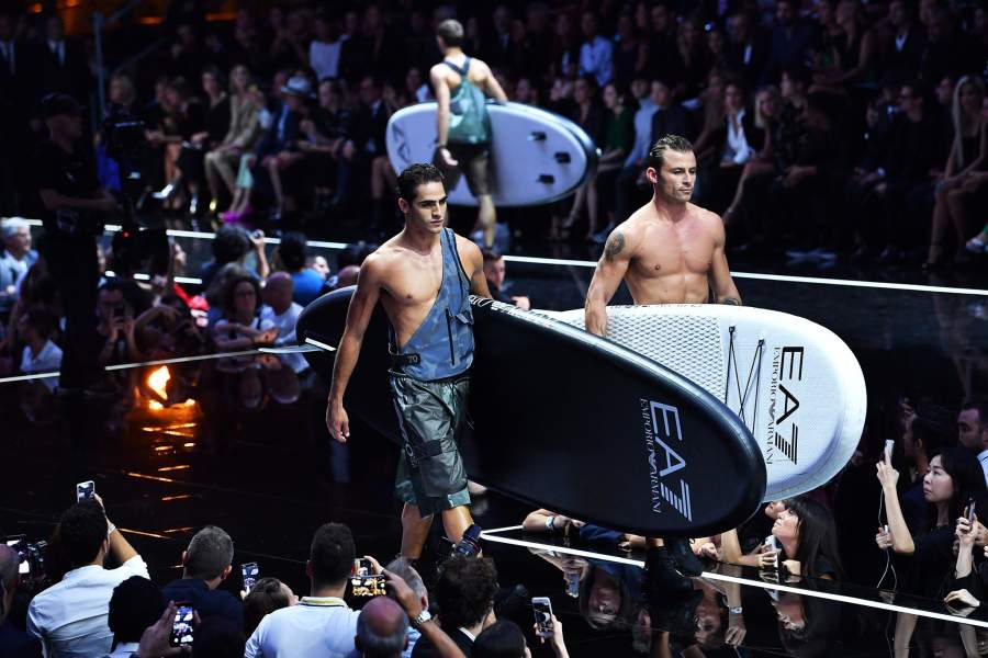 Спортивный стиль продолжает оставаться популярным, так что Emporio Armani представил коллекцию пляжной одежды для серферов