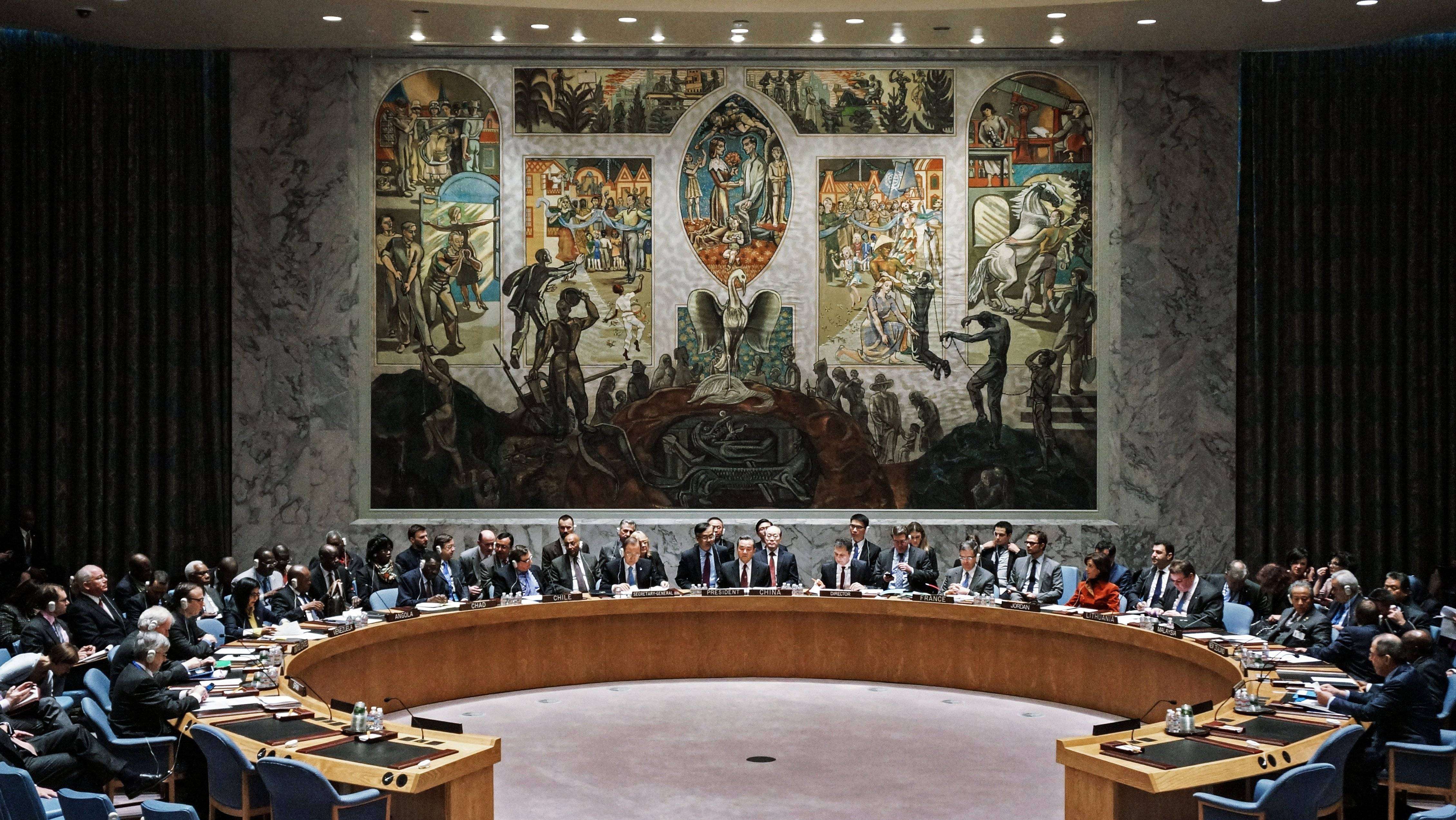 В Совбез ООН, как постоянно действующий орган организации, входят 15 государств, пять из них постоянных, 10 — непостоянных, которые избираются Генассамблеей на двухлетний срок. Постоянные члены (Россия, КНР, Великобритания, Франция, США) имеют право вето. Председатель совета сменяется ежемесячно в алфавитном порядке.