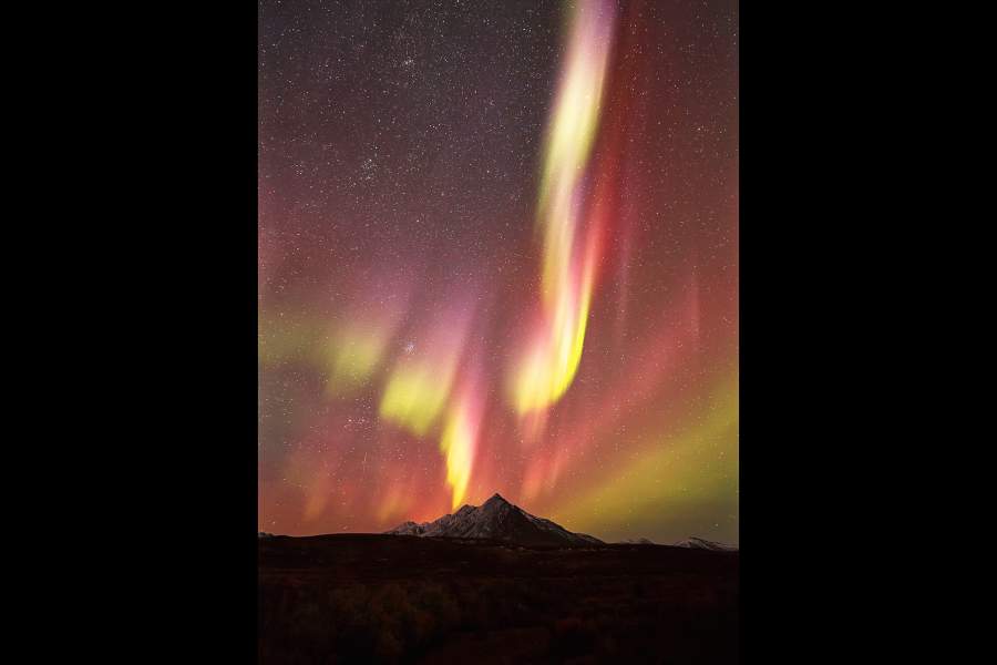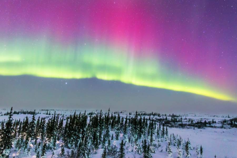 Самым распространенным цветом северного сияния считается желтовато-зеленый — он возникает в случаях, когда «солнечный ветер» сталкивается с молекулами кислорода на высоте примерно 100 км. Если столкновение происходит выше, сияние может быть розового, пурпурного или голубоватого цвета